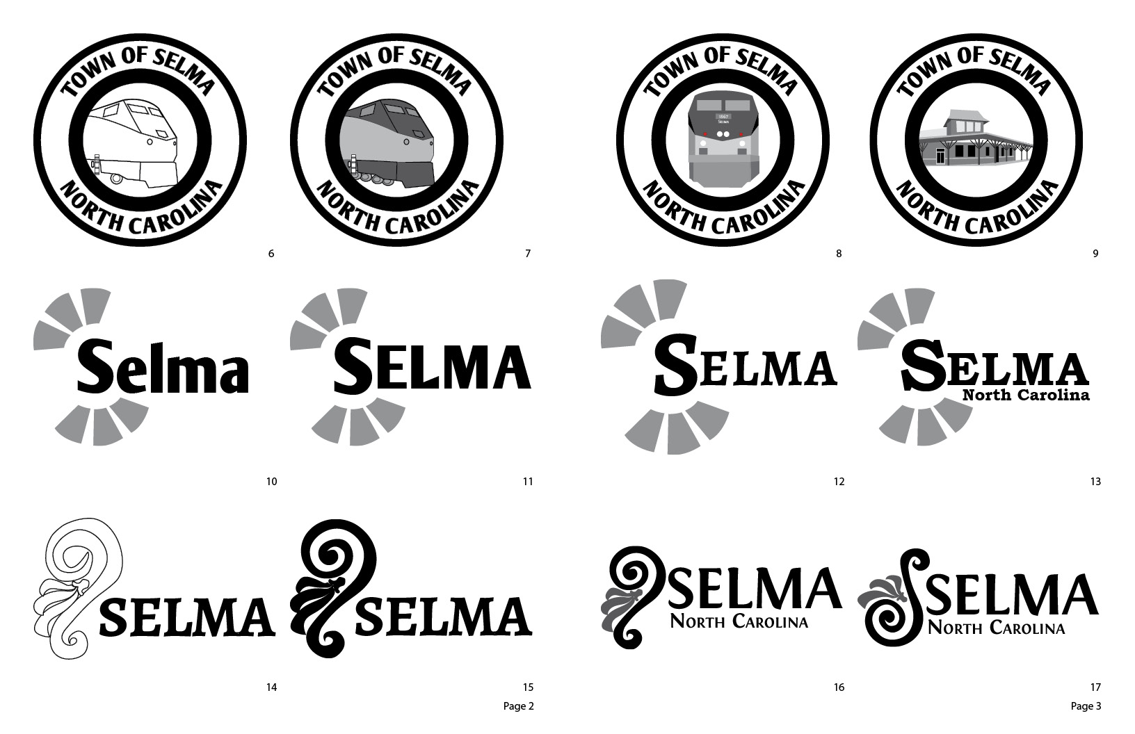 So, today we present digital roughs created in Illustrator. (If you saw my photographs, you might recognize the caboose break wheel, the depot, and an architecture element.) I tried to expand on my sketches and kept in mind the suggestions in the critique. Now to see which ones to work even more on…got any suggestions? Next is comps and color!